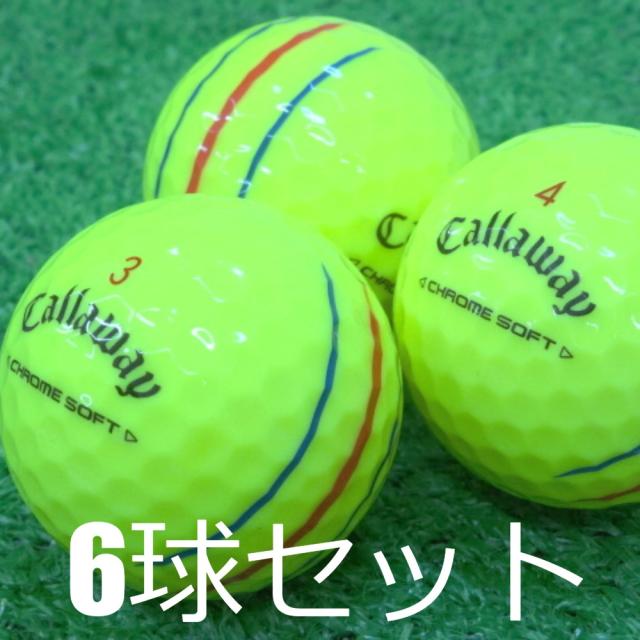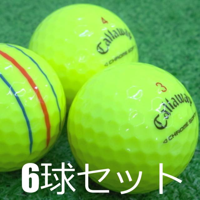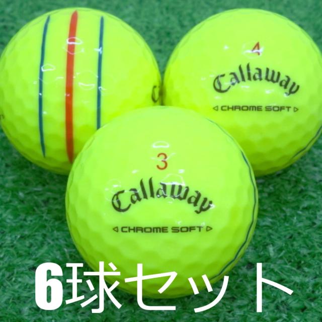 ロストボール Callaway 2024 CHROME SOFT トリプルトラック イエロー 6球セット 中古 Aランク 特選 キャロウェイ クロムソフト 優れた飛びスピンフィーリング 6角形+円の新しい空力パターンでキャリーが伸びるシームレスツアーエアロ搭載 柔らかいのに飛ぶ ゴルフボール