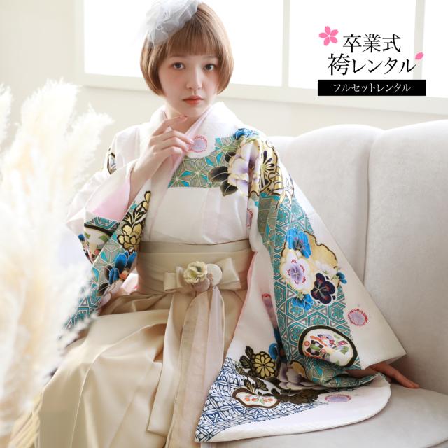 履物が選べるレンタル 卒業式 袴 レンタル 女 大学 フルセット 袴セット 女性 卒業式袴セット 袴フルセットレンタル シンプル 「生成り地に八重菊と絞り八重桜」 大人