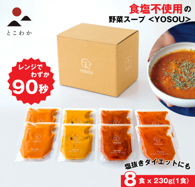 食塩・砂糖・化学調味料不使用 国産 野菜スープ [8食セット×230g/1食] YOSOU 植物性原料100% スープ レトルト 動物性原料不使用 ヴィーガン ベジタリアン 野菜スープ ポタージュ ファスティングサポート食 減塩に取り組む方に自然の味を