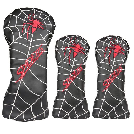 ゴルフヘッドカバー ドライバー用カバー ウッド FW用カバー ユーティリティUT用カバー 変換ダグ付き SPIDERS スパイダー 単品/3点セット 黒 (3点セット)