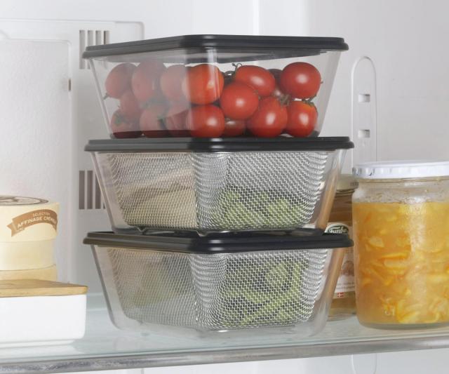 ●一時保存に便利なフタ付きで、冷蔵庫内で重ねて置けます。