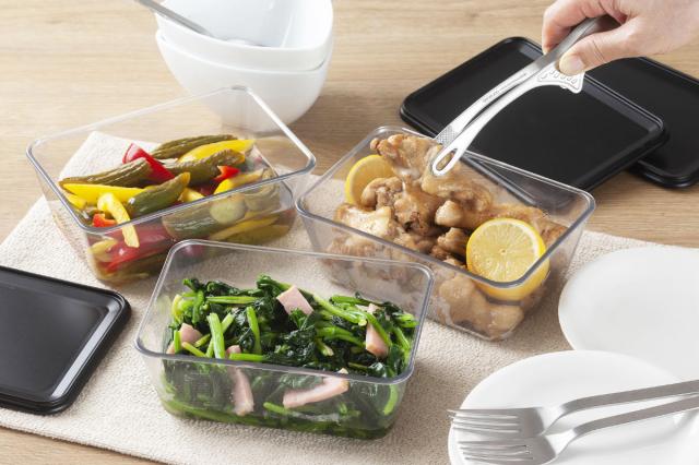フタ付きなので作り置きや残り物の一時保存に便利です。重ねて置けるので冷蔵庫内もスッキリします。バットは透明で、中身の鮮度が一目でわかります。※フタは密閉できません。