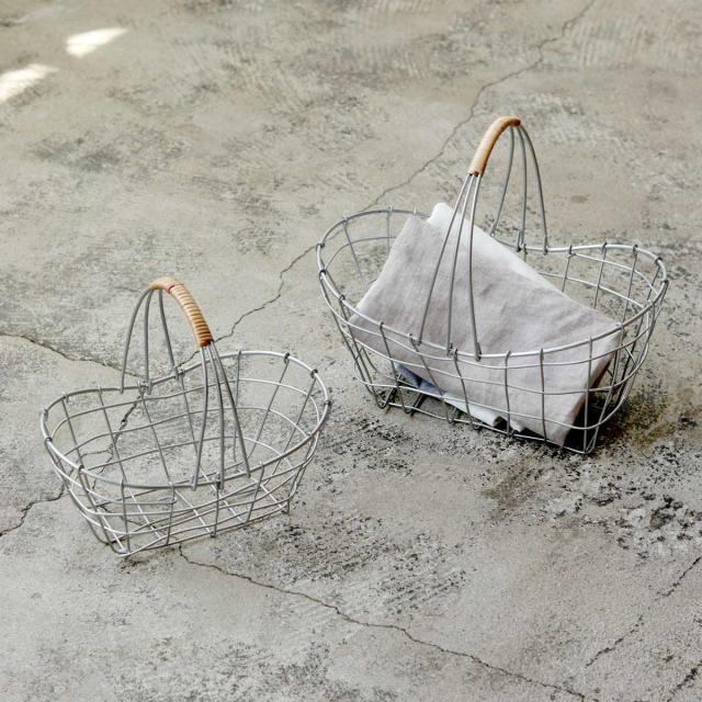 落ち着いたシルバー塗装で仕上げ、アクセントに柳を使ったワイヤーバスケットです。シンプルでヴィンテージ感あふれる風合いは幅広いテイストのインテリアに馴染みます。