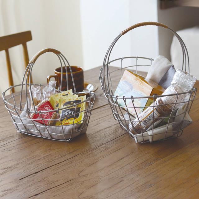 ワイヤーバスケットは、「見せる収納」としてお部屋に置くだけで様になります。食品・日用品ストック、キッチン雑貨、コスメグッズ、タオル、お掃除用品の収納など、アイデア次第で様々なシーンで活躍します。