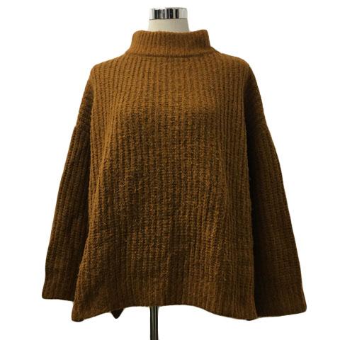 【中古】ミスティック セーター ニット プルオーバー ハイネック 無地 スリット 長袖 F 茶 テラコッタ ブラウン