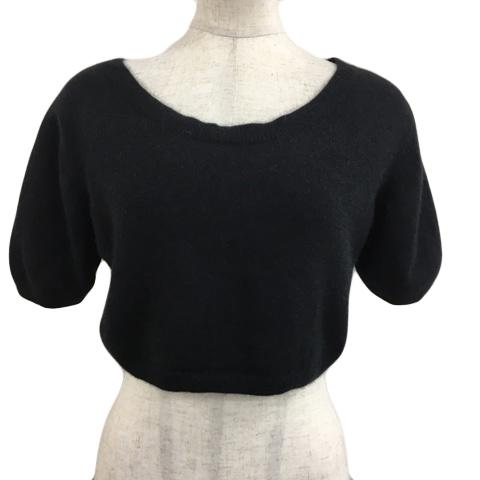【中古】スナイデル SNIDEL セーター ニット プルオーバー Uネック ショート 無地 アンゴラ 半袖 1 黒 ブラック