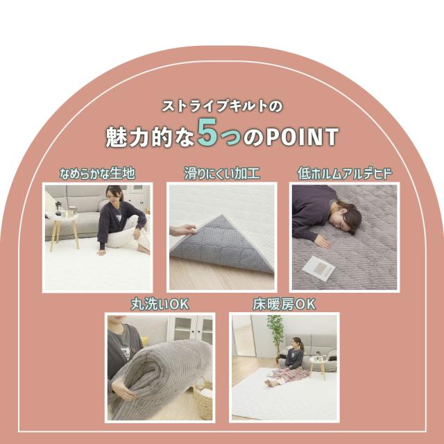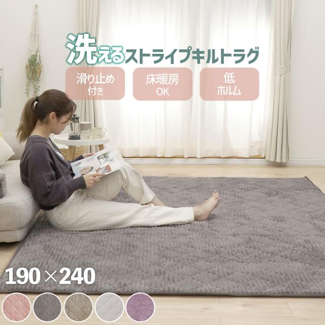 ストライプキルトラグ ラグ 洗える 滑り止め 床暖房対応 ホットカーペット対応 おしゃれ かわいい 北欧 190×240 家族 子供 ペット リビング こたつ キルティング ラグ カーペット