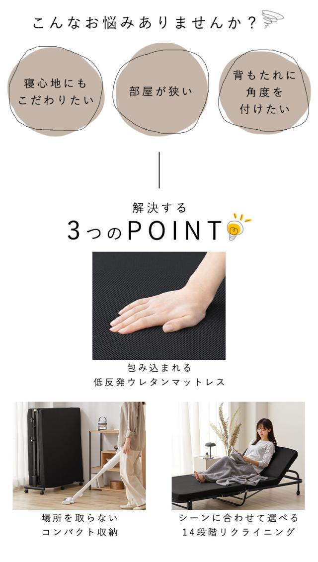 (検索用:折りたたみベッド・シングル・コンパクト・マットレス付き・低反発・手動・簡易ベッド・折り畳み・リクライニングベッド・14段階・手動・介護・収納・4967576743204・アイリスオーヤマ)