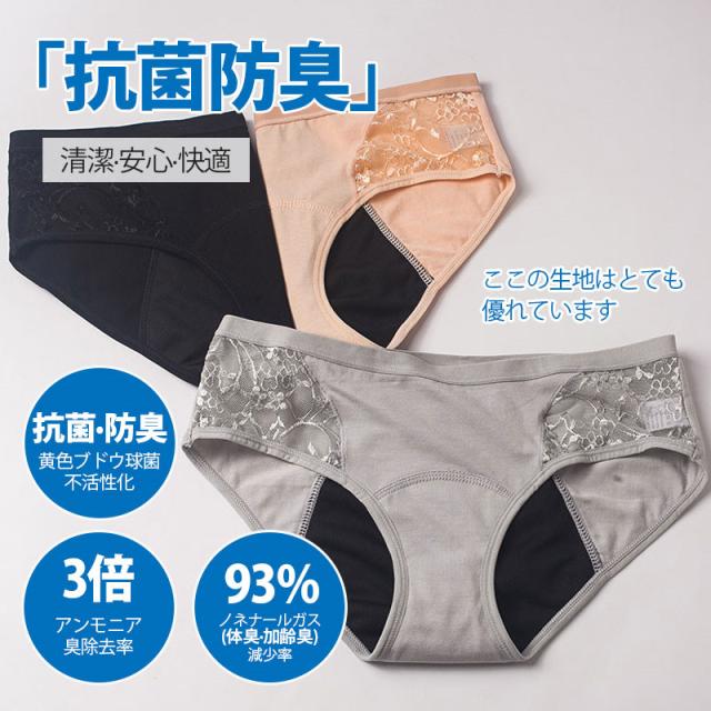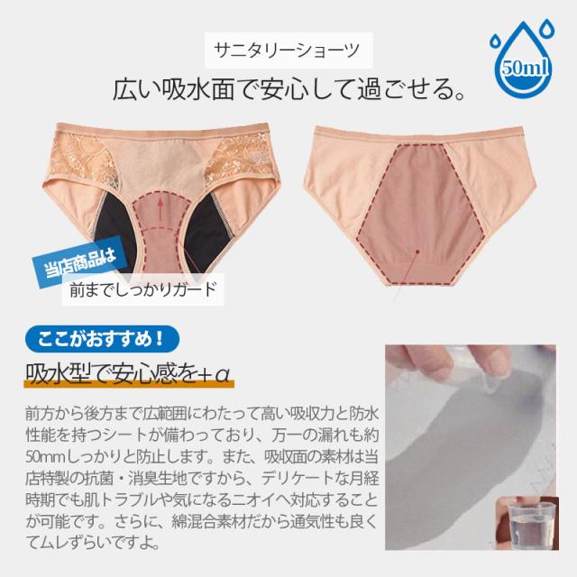 【水曜日まで!10%クーポン配布中】 サニタリーショーツ 3枚セット 50cc吸水 生理ショーツ 失禁ショーツ 花柄 レース 前漏れ防止 後ろ漏れ防止 肌着 下着 コッ