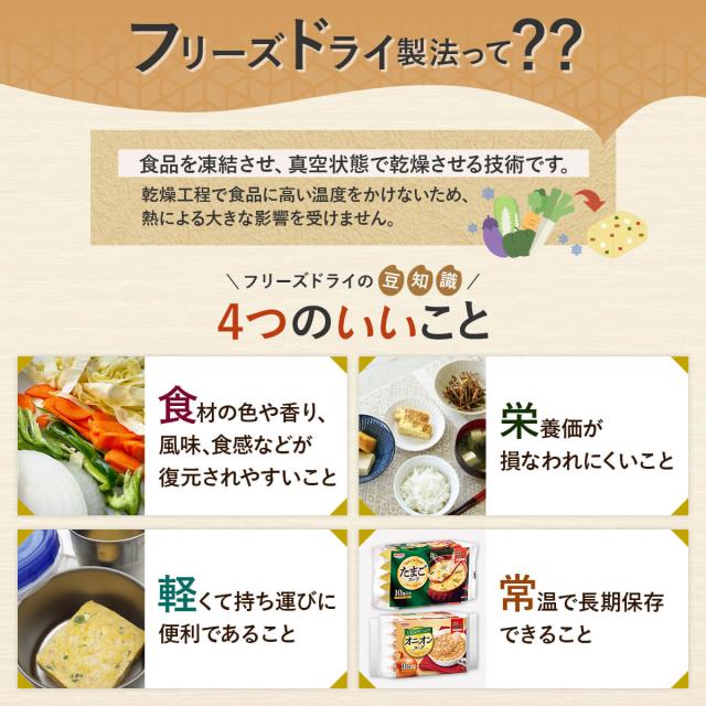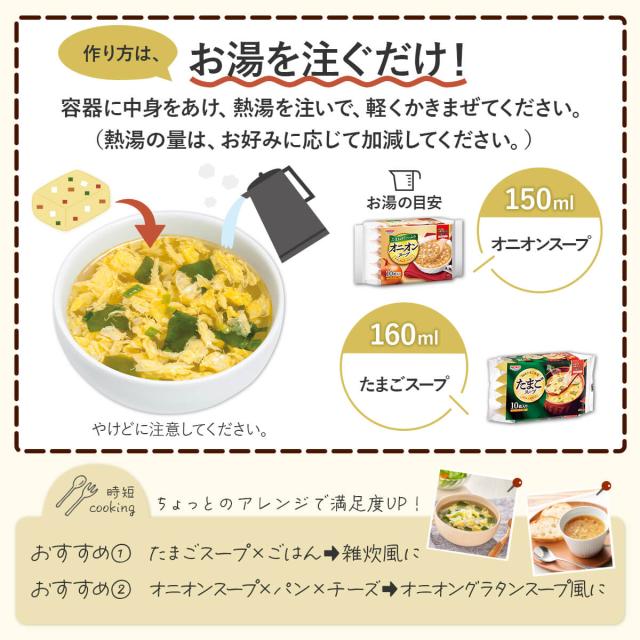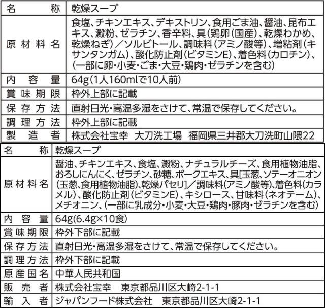 | 内容量 | ■ フリーズドライスープ 10食入り たまごスープ 64g オニオンスープ 64g 2種 2袋 合計20食 |