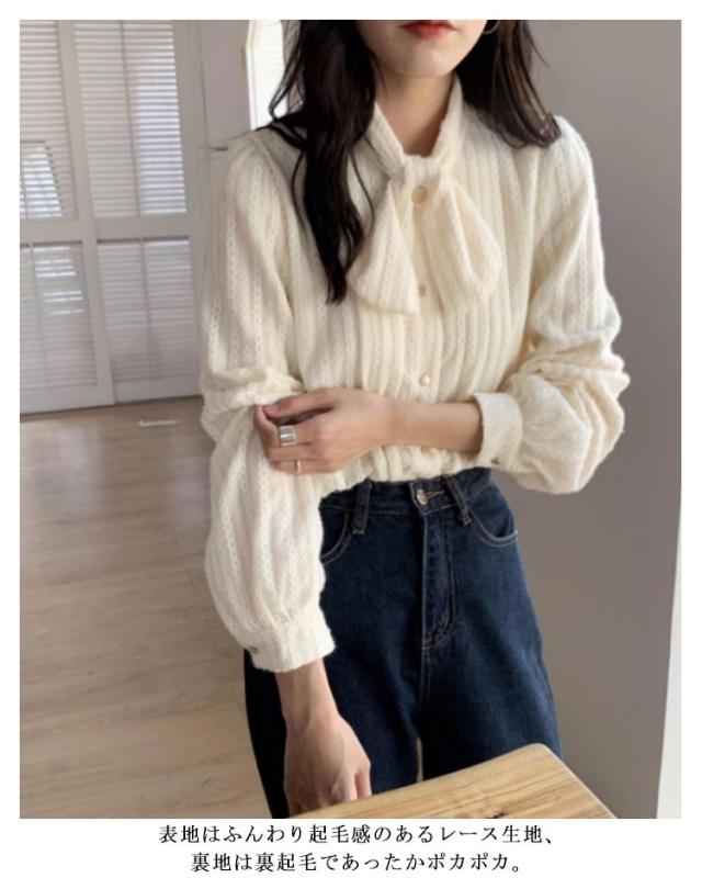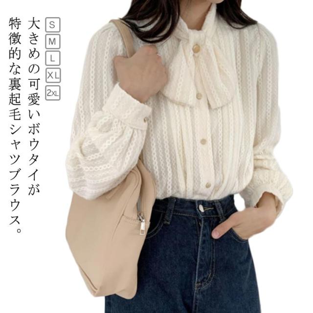 裏起毛 ブラウス レディース シャツ トップス リボンシャツ 長袖 シャツブラウス ボウタイ リボンタイ レース あったか 裏ボア 送料無料 カジュアル オフィス スーツ インナー 女性 ビジネス 通勤 事務服 春秋冬 大人 可愛い おしゃれ