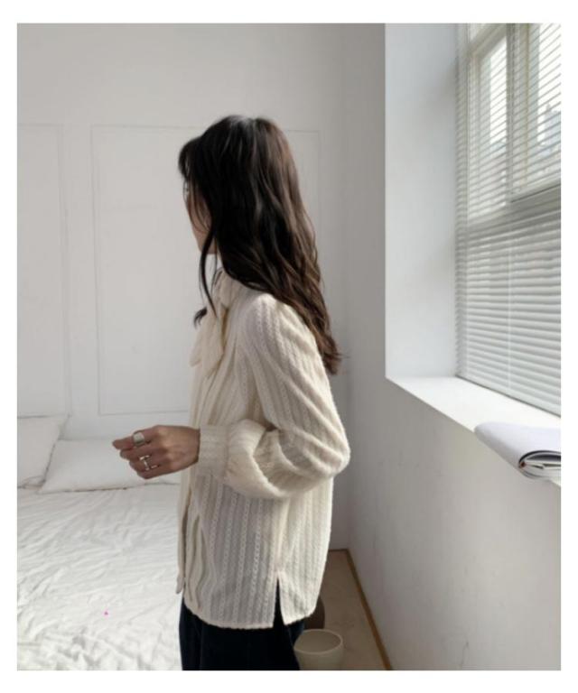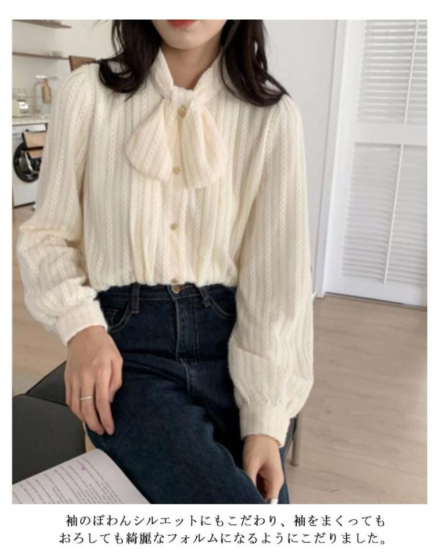 | 大きめの可愛いボウタイが特徴的な裏起毛シャツブラウス。 表地はふんわり起毛感のあるレース生地、裏地は裏起毛であったかポカポカ。 襟と一体型になったボウタイは結び方で簡単にアレンジができるから、一枚で色んなお洒落が楽しめます。 袖のぽわんシルエットにもこだわり、袖をまくってもおろしても綺麗なフォルムになるようにこだりました。 ニットやジャケットからちらりと見えるレースが女らしいフェミニンな印象。 薄手タイプも用意しておりますので長い季節着まわしやすい。 そのままサラッと着てもよし、ウエストインでも大活躍です。 | |