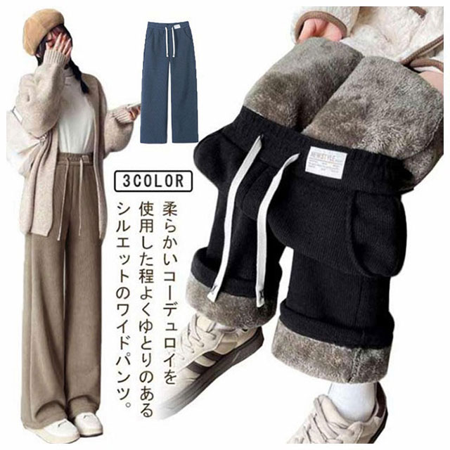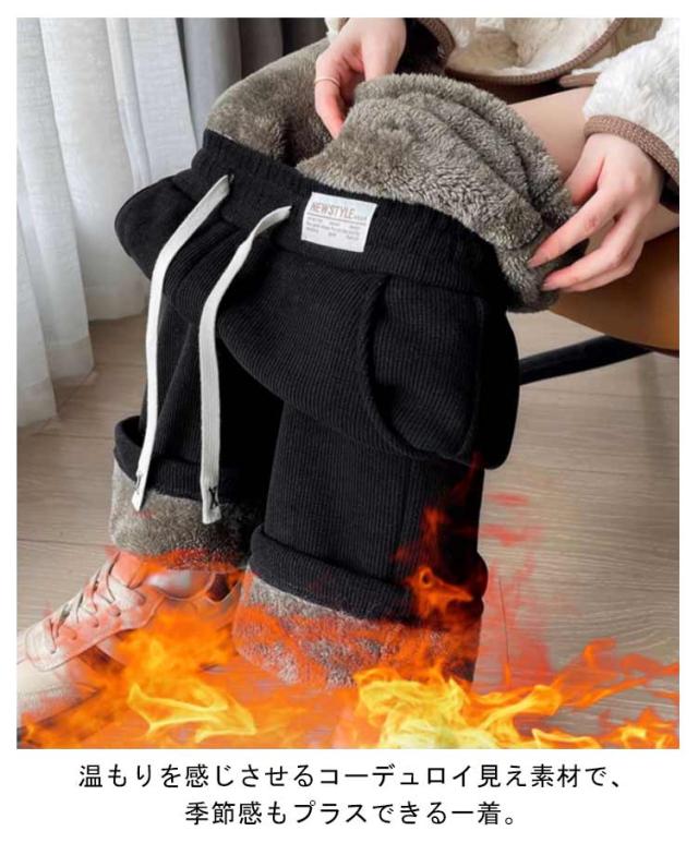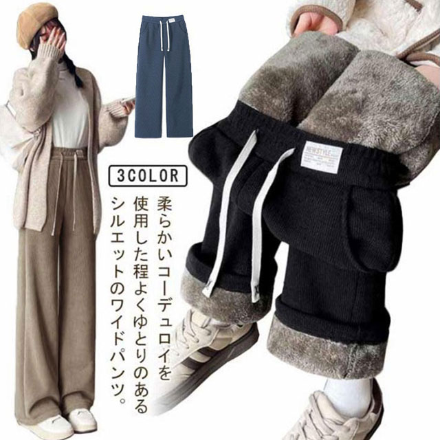 ボトムス 裏起毛 裏ボア レディース コーデュロイパンツ 裏起毛パンツ ゴムウエスト 裏起毛 コーデュロイ 厚手 極厚 あったか ポケット付き イージーパンツ ワイドパンツ もこもこ ハイウエスト 防寒 パンツ 保温 暖かい カジュアル きれいめ 着?せ
