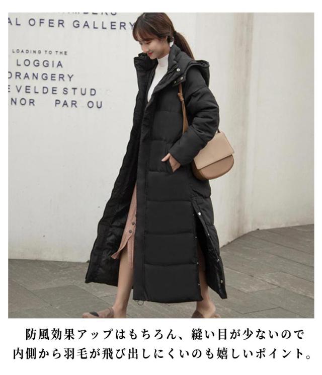 フード マキシ丈 レディース 中綿コート 中綿ジャケット スタンドカラー 超ロング Iライン 着痩せ 体型カバー マキシ丈 ロング アウター 秋 きれいめ コート 大きいサイズ 防寒 防風 軽量 無地 シンプル おしゃれ カジュアル