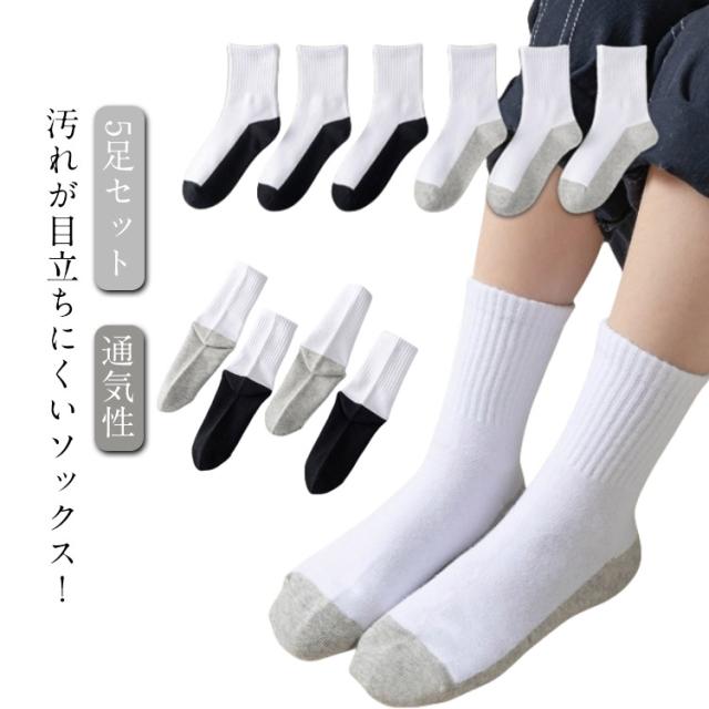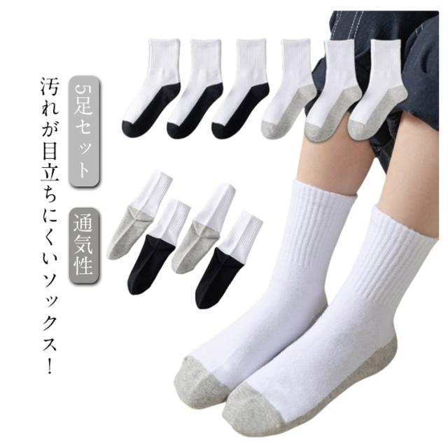 靴下 ジュニア ソックス スクール オールシーズン 白ソックス 足底切り替え 男児 女児 白 綿 冠婚葬祭 汚れが目立ちにくい 靴下 キッズ ジュニア 子供 キッズ 蒸れない 通気性 学生 幼児 5足組 フォーマル 発表会 スポーツ