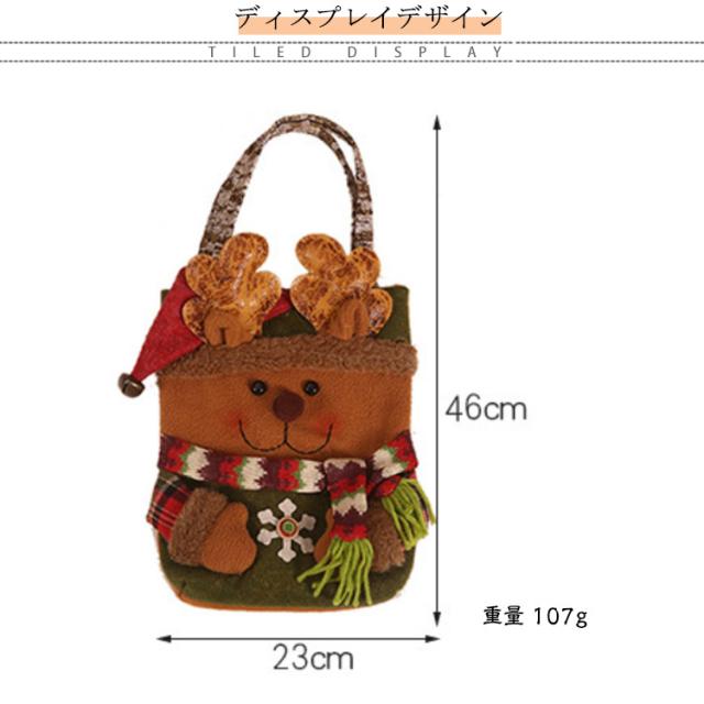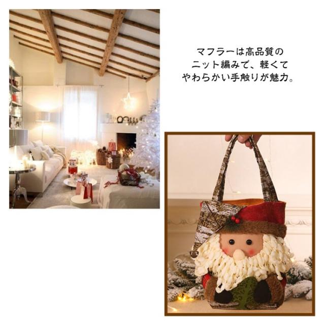 | クリスマスムードがいっぱい! クリスマスベル付きお菓子バッグ プレゼントやお菓子を入れてお子さんに渡しても可愛いです。 トナカイ、サンタと雪だるまをモチーフにして簡単にクリスマスムードを演出できます。 革らしいしっとり滑らかな質感の持ち手。柔らかいのに丈夫で耐久性があります。 にっこりとほほ笑む優しい表情に、帽子を被った姿が可愛らしいです。 <details> ●マフラーは高品質のニット編みで、軽くてやわらかい手触りが魅力。 ●背面には不織布生地で作られており、厚くて丈夫で壊れにくい。 ●顔部分はもこもこで可愛いネル生地を採用している。 ●帽子の頂部にはクリスマスベルも付いている。 | |