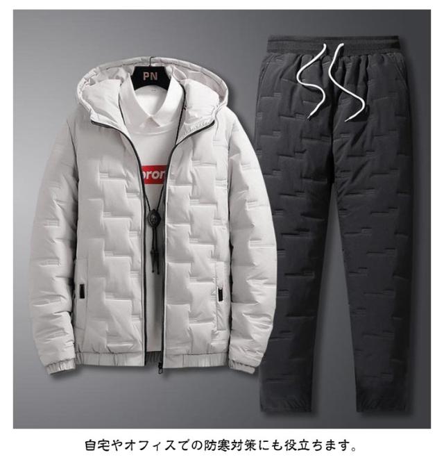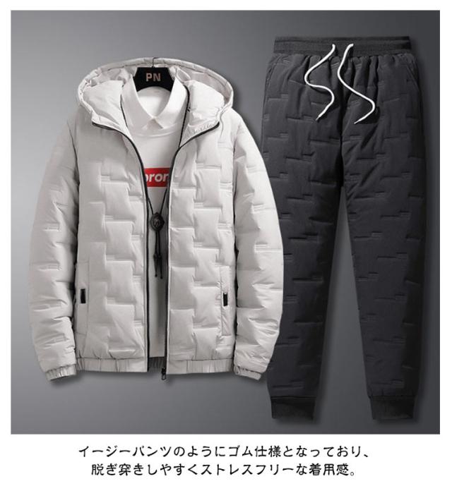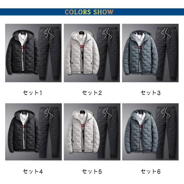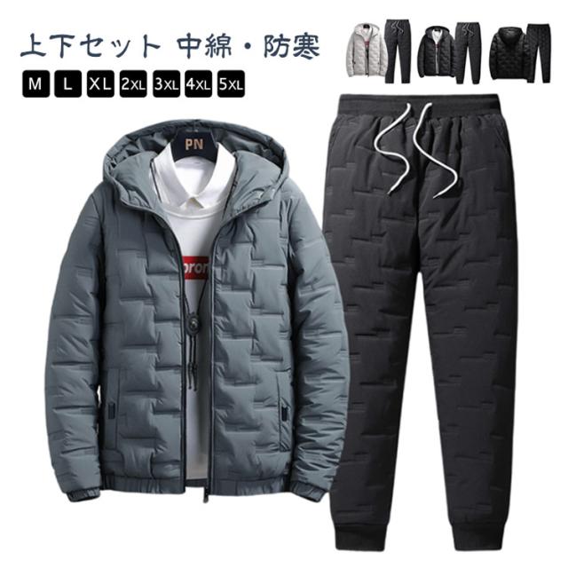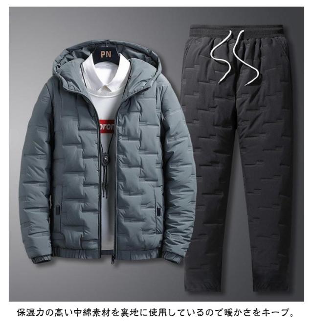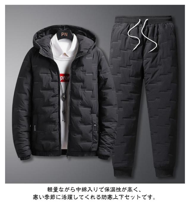キルト セットアップ メンズ 中綿パンツ 上下セット 極暖 防寒 防寒 保温 ジョガーパンツ 厚手 長ズボン 暖かい 大きいサイズ おしゃれ 冬 冬服 冬物 2点セット 暖パン あったかい 軽量 防寒ズボン 厚地 フード付き