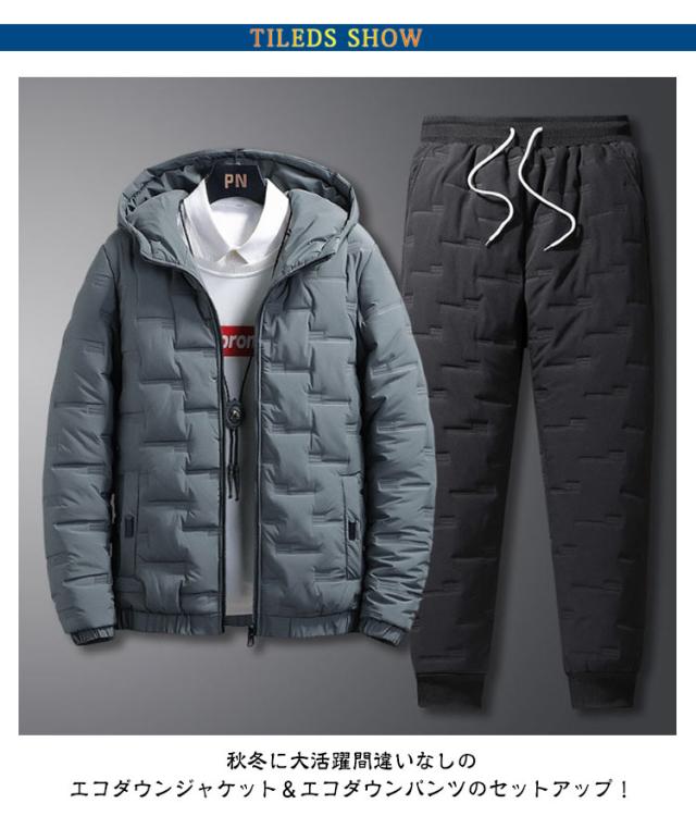 | 【上下セット】【中綿・防寒】【M〜5XL】 秋冬に大活躍間違いなしのエコダウンジャケット&エコダウンパンツのセットアップ! 保温力の高い中綿素材を裏地に使用しているので暖かさをキープ。 イージーパンツのようにゴム仕様となっており、脱ぎ穿きしやすくストレスフリーな着用感。 自宅やオフィスでの防寒対策にも役立ちます。 軽量ながら中綿入りで保温性が高く、寒い季節に活躍してくれる防寒上下セットです。 | |