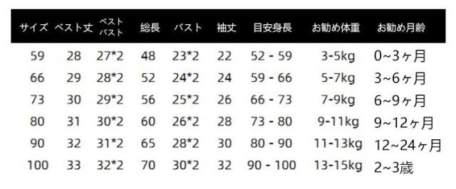 | サイズについての説明 | セット内容:ロンパース+ベスト+帽子付き<蝶ネクタイ付き> ※上記サイズは平置き実寸になります。 サイズ表の実寸法は商品によって1-3cm程度の誤差がある場合がございます。(単位:cm) |