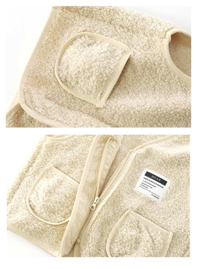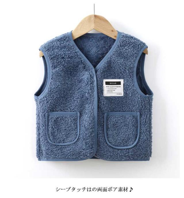 | 子供用のあったかベスト。 おしゃれでかわいくてぽっかぽか! 思わず触れたくなるふわふわ柔らかい生地、裏側はフリースで、防寒にも。 前ボタン付きで着脱も簡単!両側にはポケットも付いています。 シープタッチはの両面ボア素材♪ 動き回る小さなお子様にもおすすめ! | |