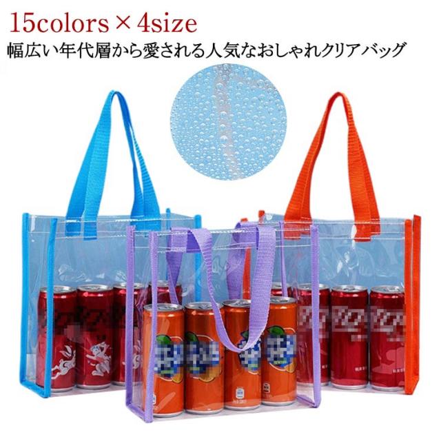 | 15colors×4size 幅広い年代層から愛される人気なおしゃれクリアバッグ。 クリアな質感だからこそどんな色のお洋服にも合う万能な素材感。 いつものコーデをワンランクおしゃれにしてくれます。 幅広持ち手なので、安定感があって持ちやすい。 重たい荷物を入れても、腕に食い込みにくいので長時間のお出かけだってらくちん。 誕生日や結婚式のギフトラッピングにも推し活にも大人気! | |