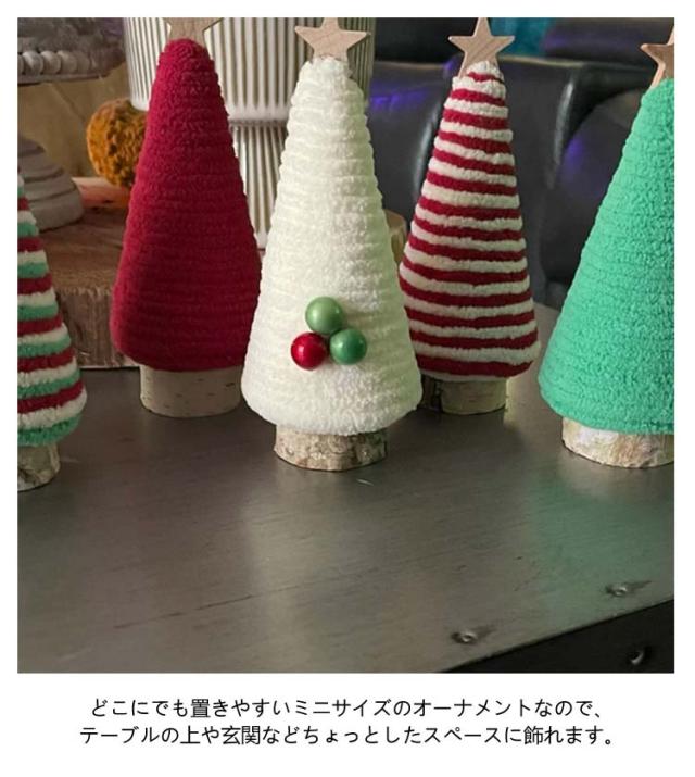 | お得な2個セット!暖かい雰囲気のチャンキーニットミニクリスマスツリー。 小さいので場所を取らず、さりげなくクリスマスの雰囲気を取り入れることができます。 どこにでも置きやすいミニサイズのオーナメントなので、テーブルの上や玄関などちょっとしたスペースに飾れます。 お部屋を素敵に彩ってくれますので、普段使いのインテリアとしてもオススメ。 お部屋の雰囲気に合わせた飾り付けであなただけのクリスマスツリー作りをお楽しみください! | |