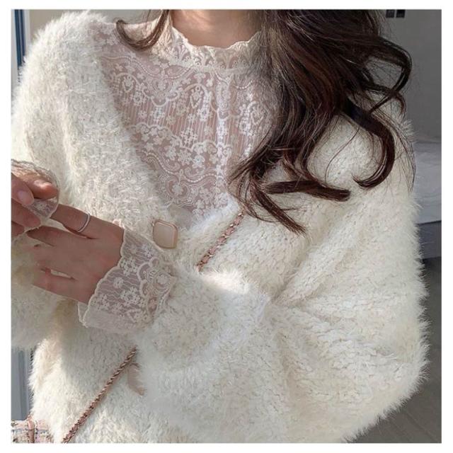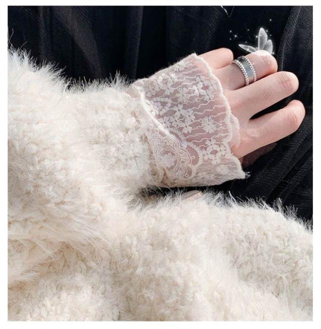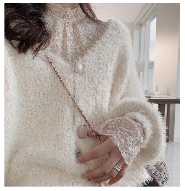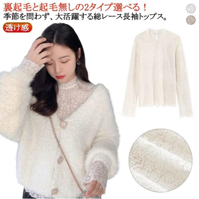 | 裏起毛と起毛無しの2タイプ選べる! 季節を問わず、大活躍する総レース長袖トップス。 | |