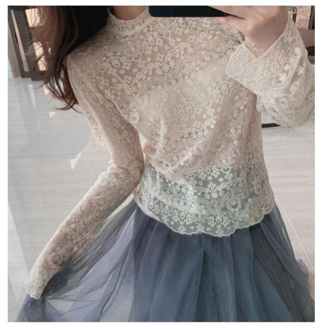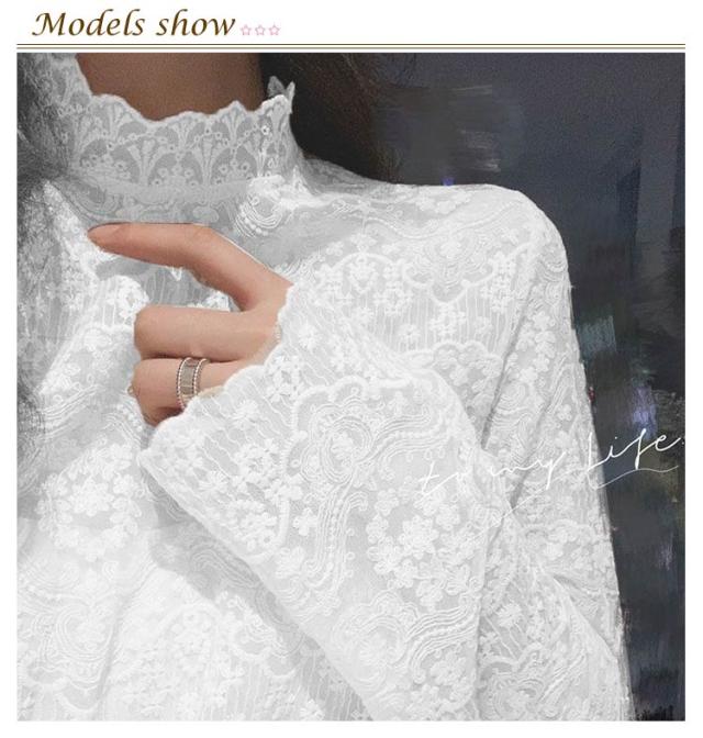 ハイネック 重ね着 総レース 長袖 透かし プルオーバー 総レース トップス レースインナー タートルネック 花柄レース シースルー メッシュ 秋冬 透け感 大人 おしゃれ きれいめ カットソー 裏起毛 暖かい