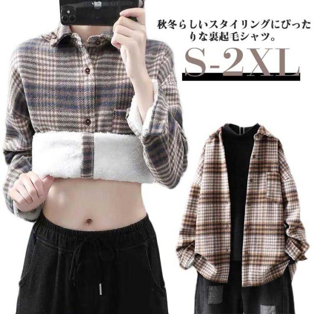 裏起毛 アウター シャツ ゆったり 裏起毛 ボア 羽織 チェック柄 もこもこ 長袖 オーバーサイズ シャツ ジャケット ふわふわ チェックシャツ 秋服 冬服 あたっか 極厚 レディース 長袖シャツ 30代 50代 おしゃれ 羽織り 防寒 春 秋 冬 ネルシャツ