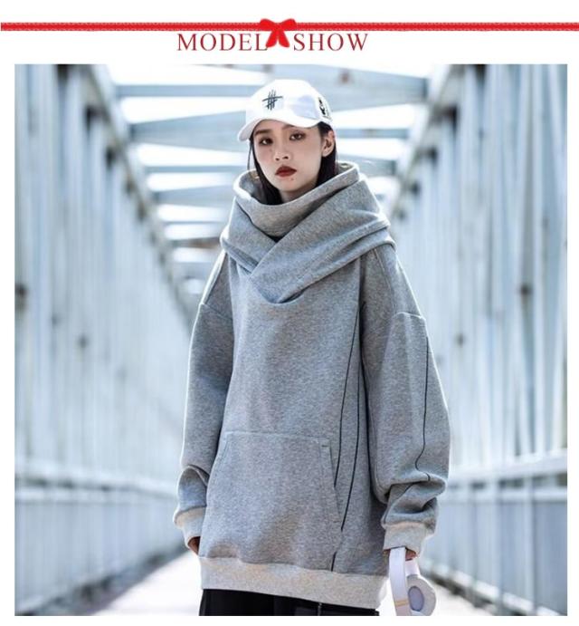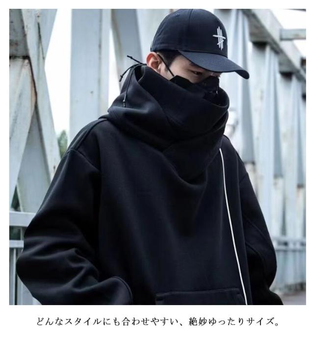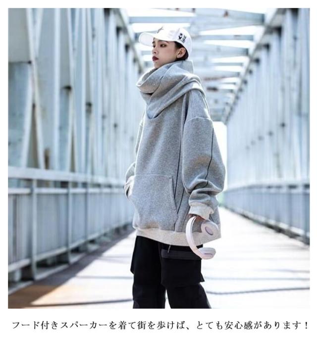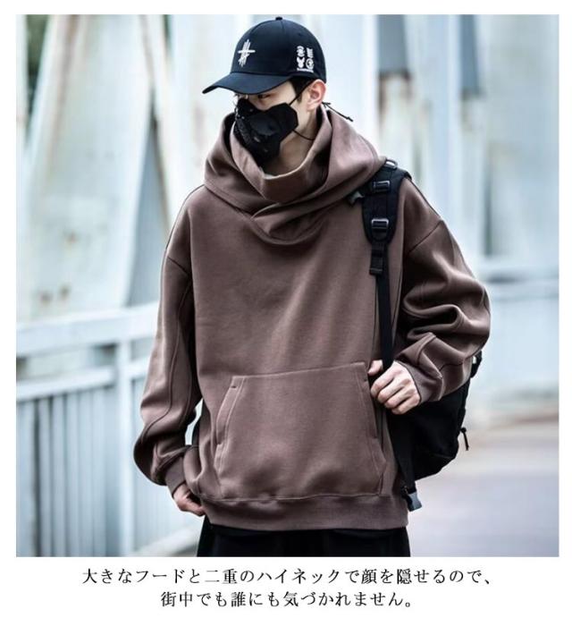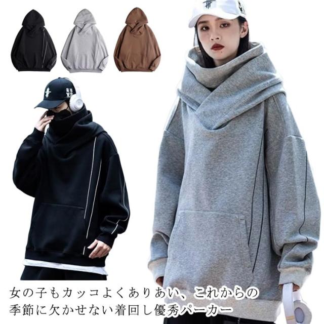 メンズ プルオーバーパーカー カップル 秋服 ヒップホップ パーカー ハイネックパーカー ボリュームネックパーカー 男女兼用 フード付きパーカー スウェット 長袖 おしゃれ 大きいサイズ 無地 ゆったり ストリート系 ボリュームネックパーカー お兄系 個性的 モード系