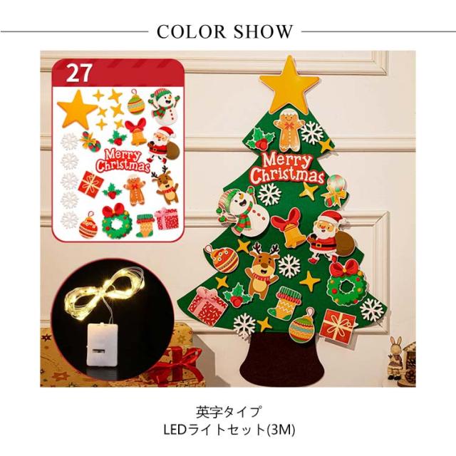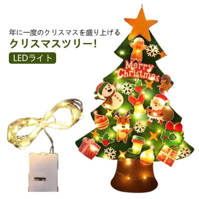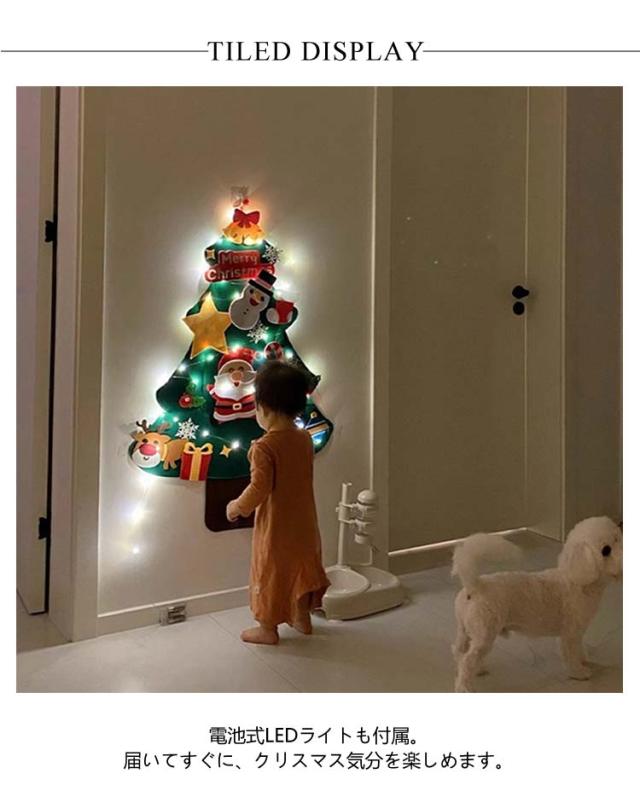 ツリー タペストリー 知育 クリスマス フェルト セット キット 壁掛け クリスマス LEDライト クリスマスツリー クリスマス LED オーナメント ライト タペストリー DIY 電飾 布 飾り 壁 ツリー 場所をとらない 飾り付け インテリア 壁掛け クリスマス