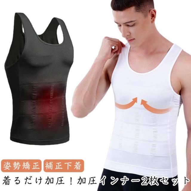 背筋 加圧シャツ タンクトップ 加圧インナー メンズ 加圧シャツ 下着 猫背 姿勢矯正 アンダーシャツ 筋トレ 着圧 姿勢補正 トップス 2枚セット 男性 コンプレッションウェア アンダーウェア スポーツインナー お腹 腹筋 ウエスト 補正下着