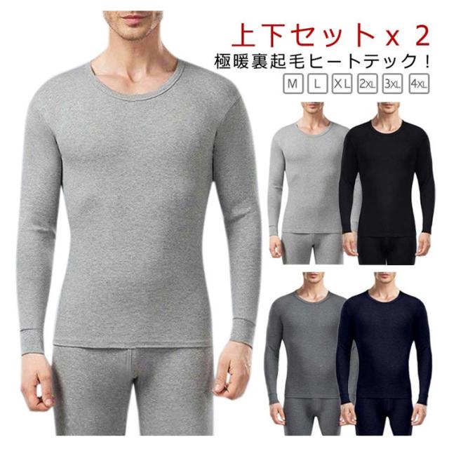 裏起毛 インナー 冬 メンズ インナーシャツ 長袖 あったかインナー 厚手 極暖 パンツ 上下セットx2 インナー ヒートテック 蓄熱 保温 暖かいインナー 下着 肌着 ストレッチ 暖かい 防寒着 トップス レギンス 秋冬 冬 黒