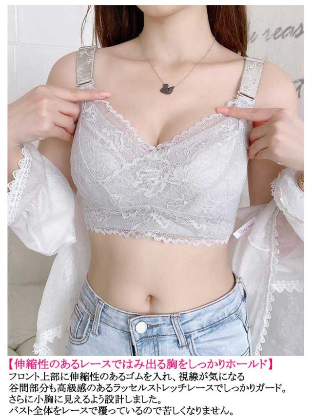 2枚セット!胸が小さく見えるブラ 花柄レース レディース ノンワイヤーブラジャー ブラジャー 2枚セット!胸が小さく見えるブラ 総レース 薄手 着痩せブラ 育乳ブラジャー 脇高ブラ
