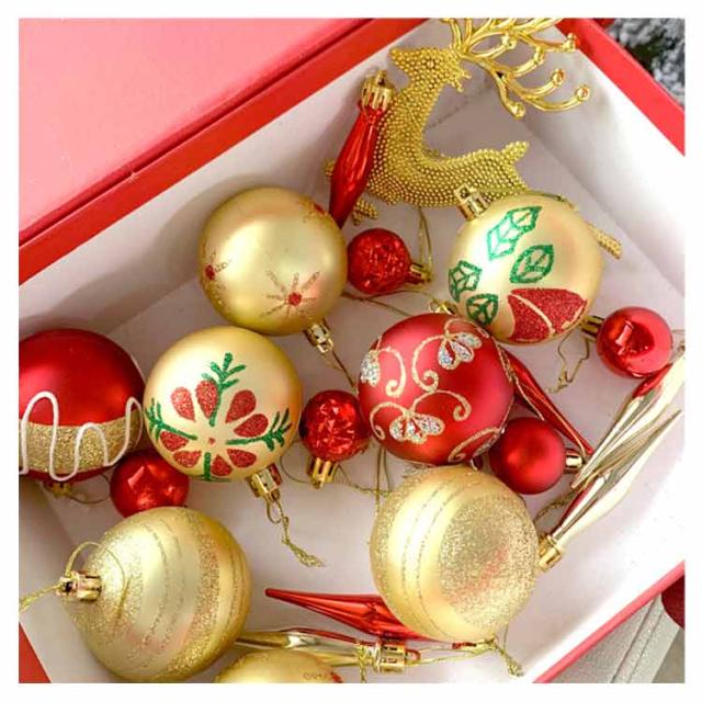 | キラキラでゴージャズなボールオーナメントセット。 大きめのオーナメントでクリスマスツリーを豪華に!ボールやスノーの飾りが入った、クリスマスにぴったり! リングが着けているためクリスマスツリーに掛けるには便利です。 クリスマスツリーのほかにも、タペストリーやブランチツリーなどのインテリアとの相性抜群です。 華やかなデザインで存在感のあるオーナメントでお部屋の雰囲気を一気にクリスマスムードに。 それぞれ異なったデザインをセットに。タイプが違うので飽きずに、可愛いXmasに仕上がりますよ。 | |