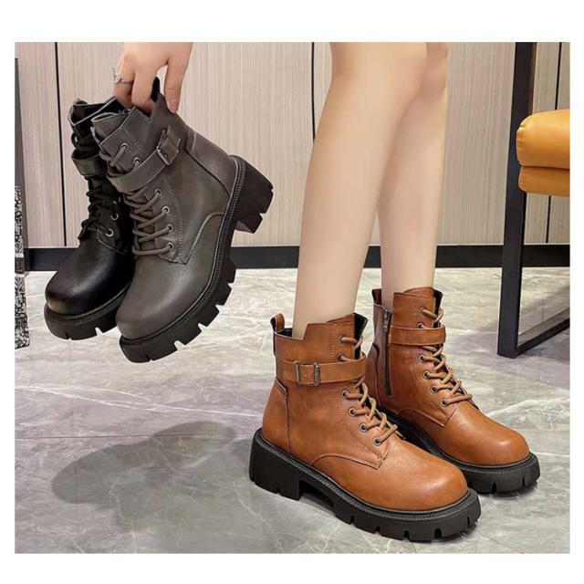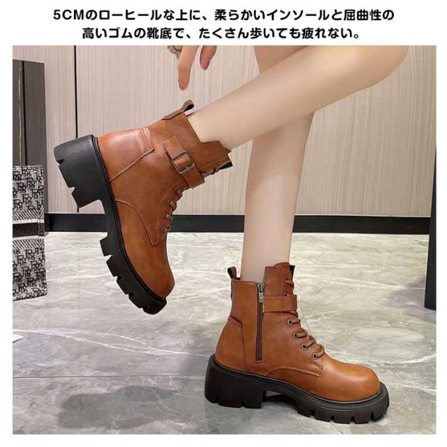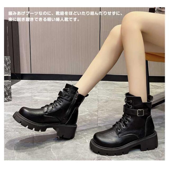 編み上げブーツ レディース 秋 ブーツ 編み上げブーツ シューズ ブーツ レースアップ サイドジッパー 疲れない 編み上げ 靴 ショートブーツ 秋冬ブーツ サイドジップ ブーティ 厚底 紐靴 ラウンドトゥ