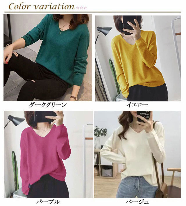 ニット レディース Vネック トップス 薄手 大きいサイズ ニットセーター ニット 長袖 Vネック 春 秋 冬 長袖 無地 通学 チュニック 薄手 送料無料 カジュアル きれいめ Vネック 長袖 秋 冬 春