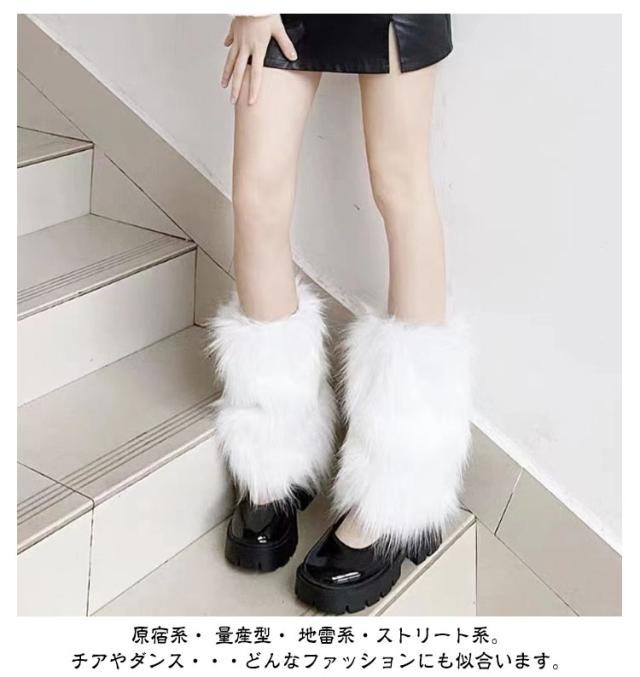 ふわふわ フェイクファー レッグウォーマー 女の子 足首ウォーマー 渋谷 もこもこ おしゃれ ギャル ロング 靴下 レッグカバー ルーズソックス ソックス 暖かい レッグウォーマー 学生 冷え対策 防寒 原宿 地雷系 ゴシック系 春 秋