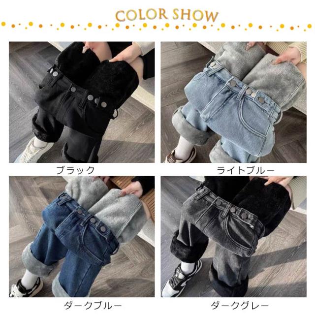 デニム デニムパンツ あったかパンツ レディース ストレート ワイドパンツ カジュアル 裏起毛パンツ セミワイド 厚手 あったか 暖かい ジーンズ 裏起毛 秋冬 デニム 防寒 保温 体型カバー ジーパン 韓国 デニムワイドパンツ 黒 通学 通勤 おしゃれ