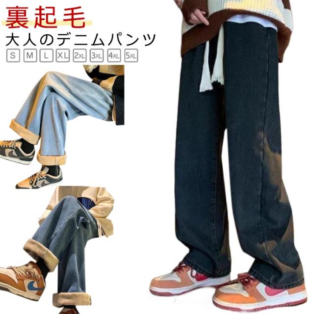 レディース 裏起毛 ワイドパンツ 厚手 デニムパンツ ワイド 秋冬 裏起毛パンツ ジーパン 裏ボア デニム 暖かい ジーンズ あったかパンツ イージーパンツ ゴムウエスト デニム デニム 防寒 保温 体型カバー カジュアル 韓国 デニムワイドパンツ 黒