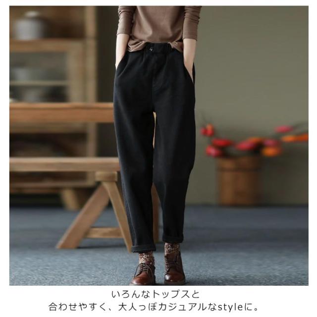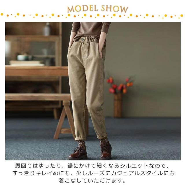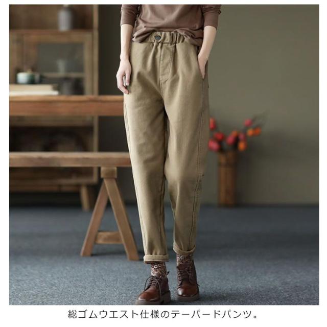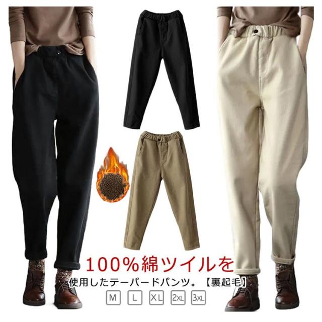 | 100%綿ツイルを使用したテーパードパンツ。【裏起毛】 腰回りはゆったり、裾にかけて細くなるシルエットなので、すっきりキレイめにも、少しルーズにカジュアルスタイルにも着こなしていただけます。 総ゴムウエスト仕様のテーパードパンツ。 丈夫で厚みもあるのに、通気性に優れ、快適◎ 裏起毛で着心地&肌触りあたたか。 いろんなトップスと合わせやすく、大人っぽカジュアルなstyleに。 | |