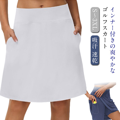 | インナー付きの爽やかなゴルフスカート ストレッチの効いたペチパンツ一体型で、アクティブな動きも安心。 吸汗速乾のある素材の生地を使用、通気性が良いので汗をかいてもべたつきにくく、さらりとした軽いはき心地のスカート。運動には欠かせない一枚。 インナー付きだから、かがんだりしゃがんだりする際に、お尻まわりを気にせずに済む。 ゴルフウェアはもちろん、カジュアルウェアやボウリング、テニス、バトミントン、スカッシュ等のスポーツにも最適。 | |