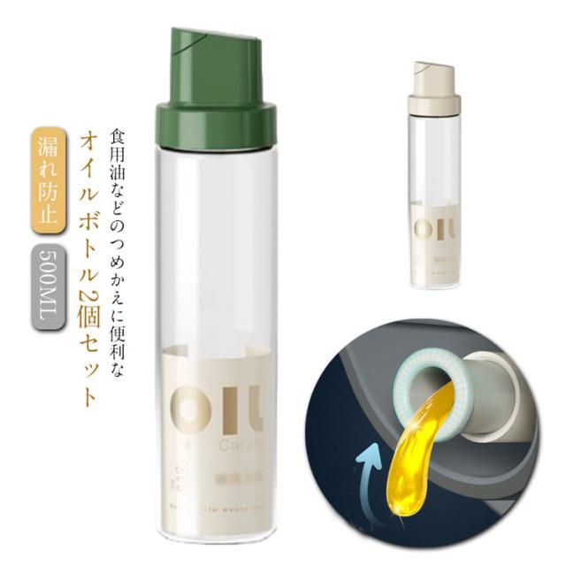 キッチングッズ ガラス 2個セット スリム オイルボトル おしゃれ 片手 漏れ防止 密封外回り設計 オイル差し オイルポット 油差し オイル入れ 調味料入れ 醤油差し クリア PP ガラス ステンレス 安定 オイルボトル 液だれしない 飲食店 500ML ギフト プレゼント
