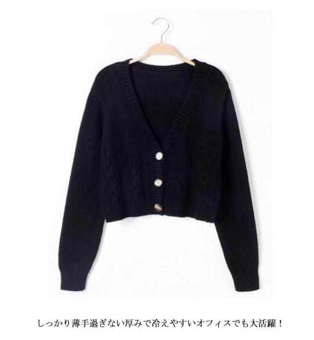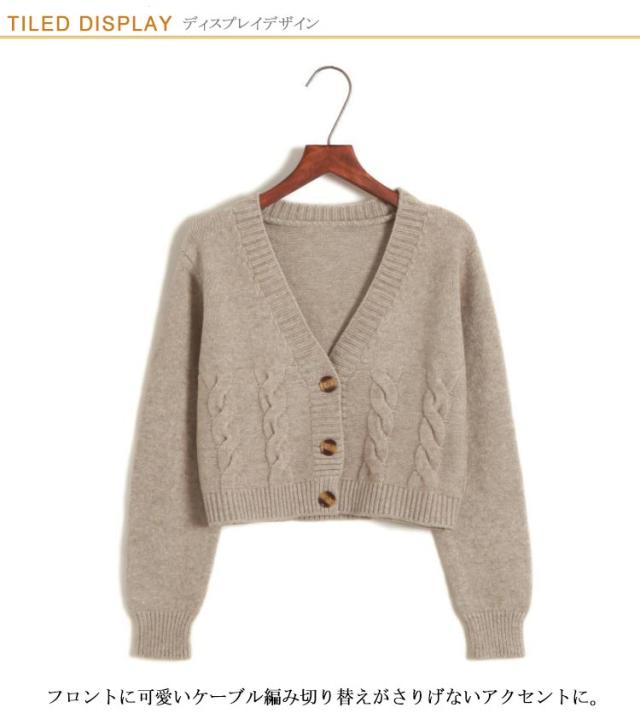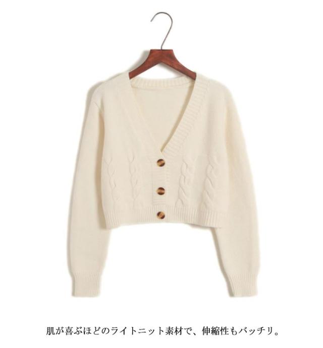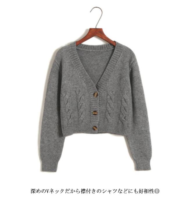 長袖 春服 カーディガン ショート丈 ケーブル編み ざっくりニット レディース Vネックカーディガン ボタン式 春物 ざっくりニット おしゃれ 可愛い ベージュ グレー ホワイト ブラック 黒 白