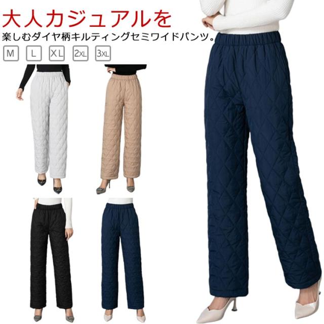 中綿パンツ レディース あったか キルティングパンツ パンツ 冬 セミワイド ダイヤ キルティング ダウン 秋 暖パン 防寒パンツ ダウンパンツ 軽量 暖かい ワイドパンツ きれいめ ボトムス ゆったり ハイウエスト ゴムウエスト ワイドパンツ おしゃれ 大きいサイズ