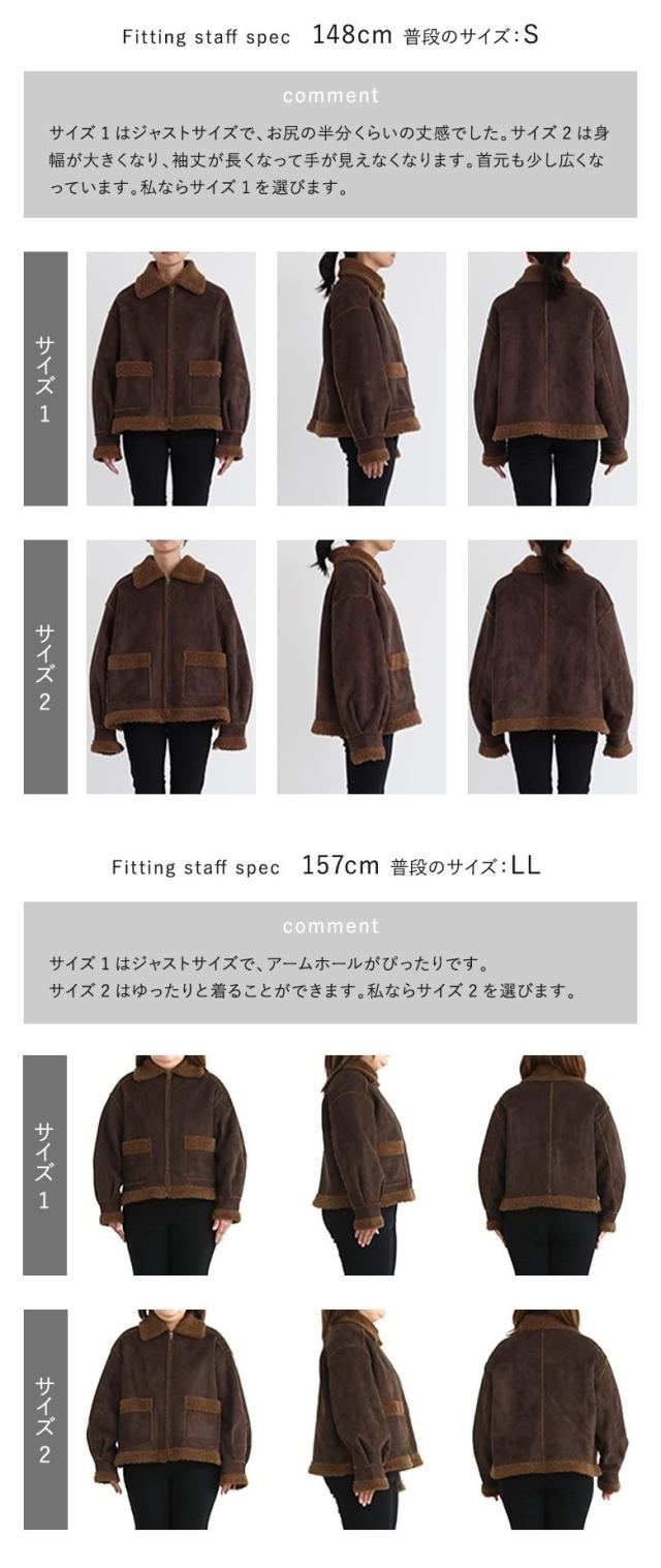 - 身長155cm 体重45kg size1 ナイスでした カラーはベージュを選ばさせて頂きました 可愛い色です 中ボアなので、まずコロコロはしてから着用して下さい これから冬がやって来るので沢山色々なコーデで着用させて頂きたいと思います いても早期対応して頂き有難うございます