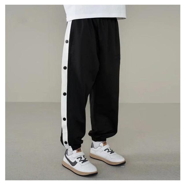 ジャージ 男の子 夏 ジュニア バスケットパンツ 女の子 スナップボタン キッズ サイドボタン サイドライン バスケットボールパンツ 裾ボタン 秋 冬 長ズボン ロングパンツ バスケットボールパンツ 下 バスパン バスケパンツ
