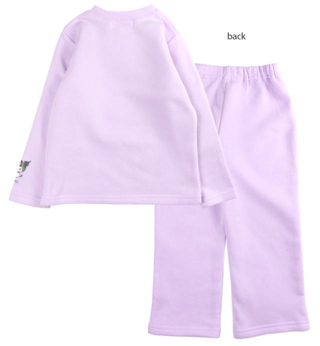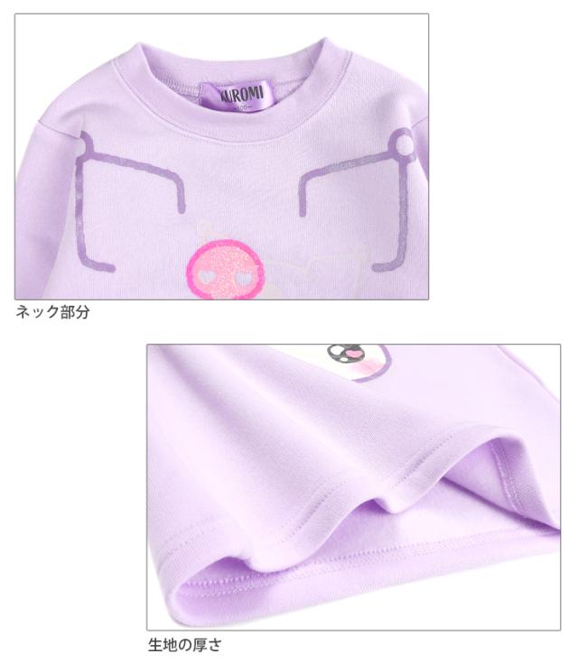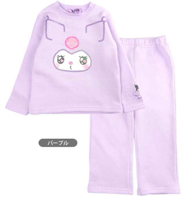 【送料無料】My Melody Kuromi 裏起毛 蓄光 パジャマ 上下セットアップ キッズ ジュニア 100 110 120 130 パープル サンリオ マイメロディ クロミ 長袖 長ズボン ルームウエア 部屋着 スウェット スエット プルオーバー 丸首 子供 女の子 紫 No.9915