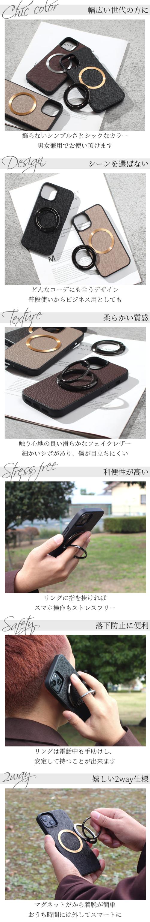 iphone ケース レザー iphone17 iphone16 iphone15 iphone14 iphone13 pro SE マグセーフ対応 magsafe リング付き マグネット 17pro 16pro 15pro 13mini リング スリム アイフォン 17 air 16 15 14 13 12 se3 おしゃれ シンプル スマホケース スタンド メタリック 送料無料