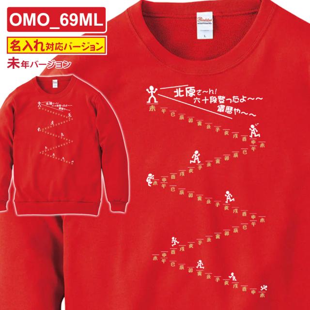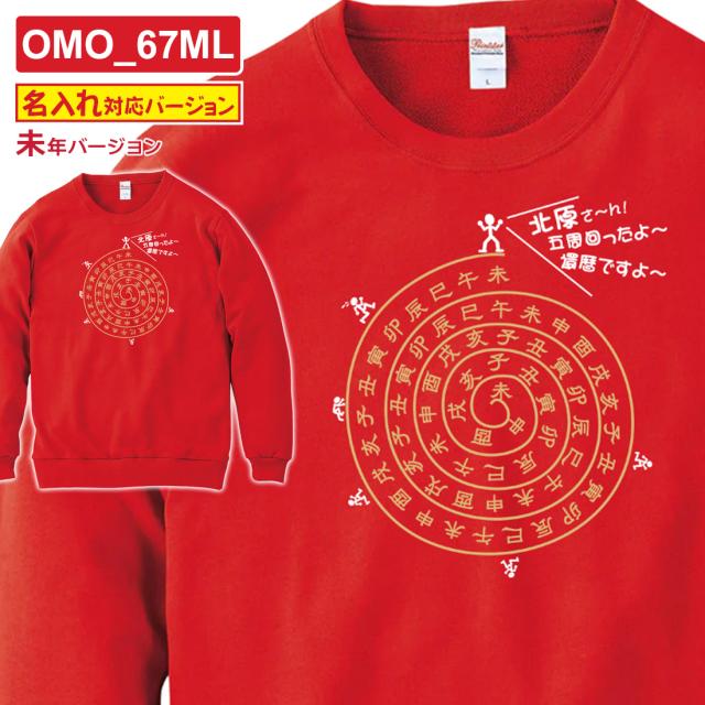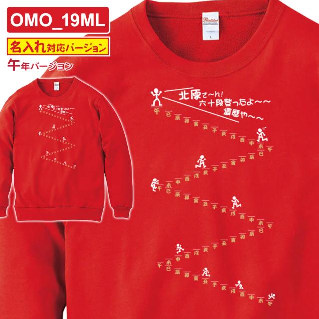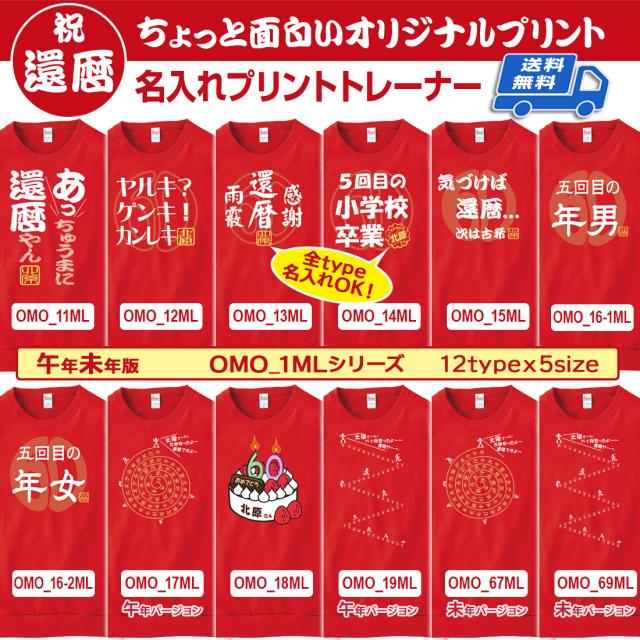 還暦 長袖 トレーナー 名入れ OMO-1MLシリーズ 巳年 午年 対応版 還暦祝い おもしろい プリント お祝い プレゼント ラッピング 赤 レッド おしゃれ サプライズ メンズ レディース 男性 女性 父 母 上司 メール便 送料無料